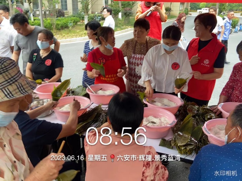 为庆祝端午佳节,弘扬中华民族优秀传统文化,搭建友好交流平台,营造邻里守望和谐氛围,6月16日,捷迅物业携手高桥湾村委、雷雨房地产经纪公司、霍山联合村镇银行及邦富电梯有限公司举办以“粽叶飘香迎端午,幸福和谐邻里情”为主题 的包粽子比赛,与业主们一起欢乐竞技,回味传统习俗。
